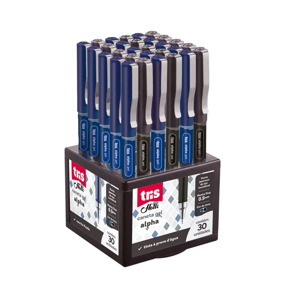 Caneta Gel Alpha Holic Fancy - Azul/Preto - 0.5mm - Display C/30 un -Tris