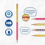 Com estampas de estrela, acabamento metalizado e detalhes neon! Só tendê ncias nesse lápis <(><<)>3 Lápis de madeira reflorestada, com traço HB, corpo redondo e borracha no topo.