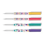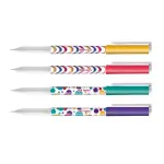 Com estampas lindas e divertidas, a caneta Happy possui ponta 1.0mm e tinta azul de traço super macio, além de pega triangular muito confortável! Em 2 opções de cores de corpo super colorido pra você escolher!