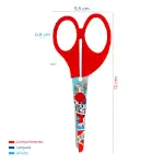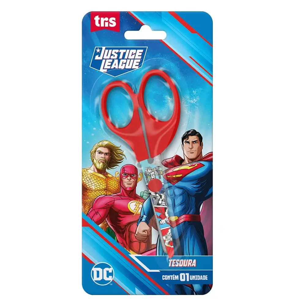 Com pontas arredondadas e cabo resistente em PP, a tesoura Liga da Justiça possui as lâminas decoradas, 13cm de comprimento total e 1,5mm de espessura de lâmina. É em aço inox, com cabo na cor vermelha!
