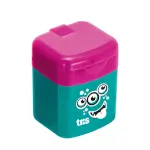 Apontador com estampas de monstrinhos super divertidas! Modelo compacto, com depósito - que evita sujeira - e com tampa abre e fecha. Lâmina antiferrugem super reforçada.