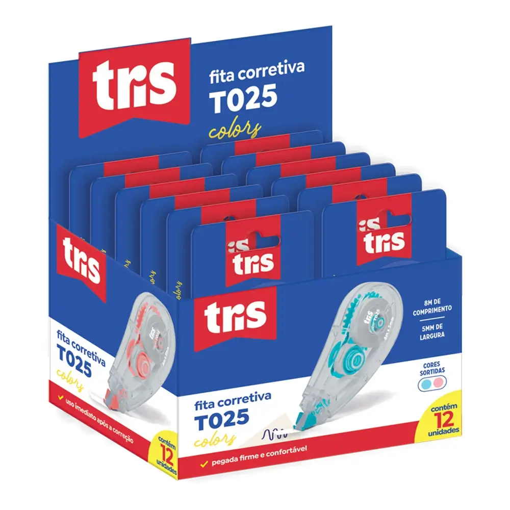 Fita Corretiva T025 Colors - 8m x 5mm - Cartela C/1 un - Tris