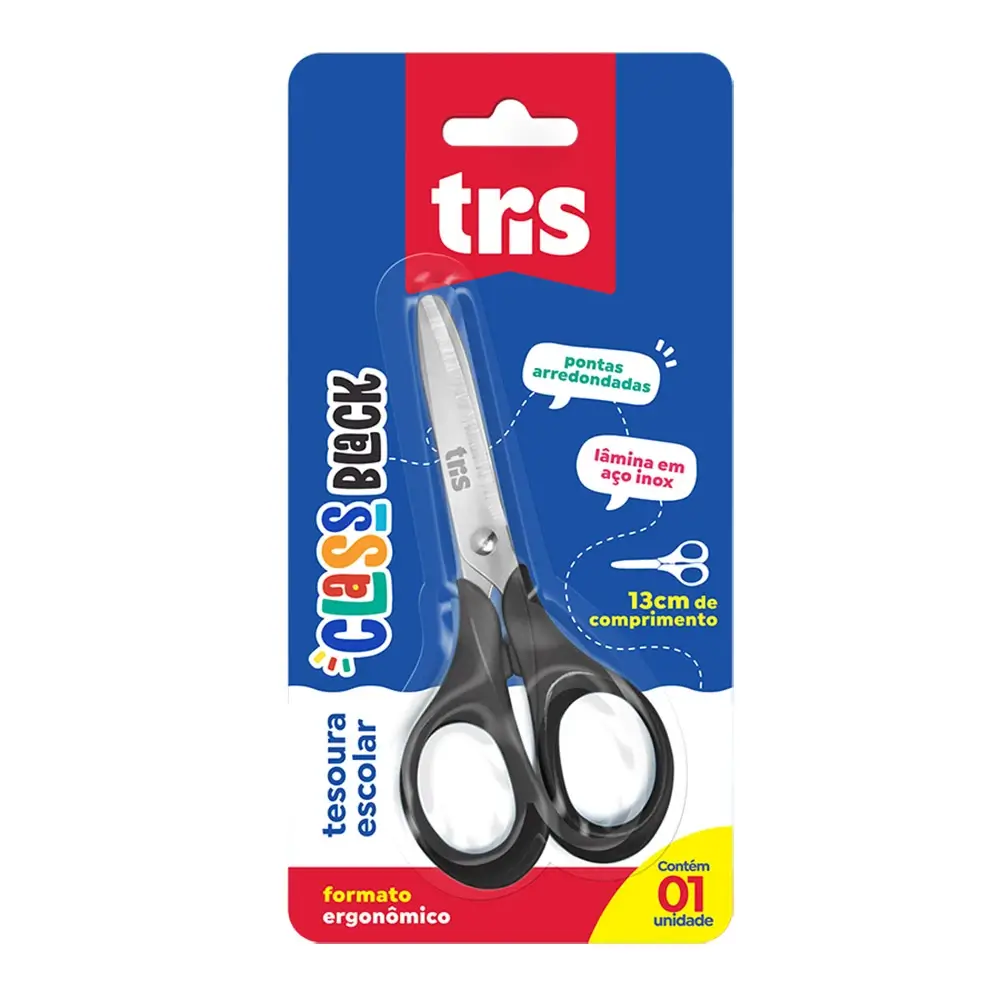 Tesoura Escolar Class - 13cm - Preto - Cartela C/1 un - Tris