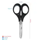 A tesoura Class já é um clássico TRIS: lâminas de 1,5mm de espessura, com pontas arredondadas e cabo ABS de alto brilho, é uma tesoura de aço inoxidável escolar de 13cm de comprimento. Cor preta.