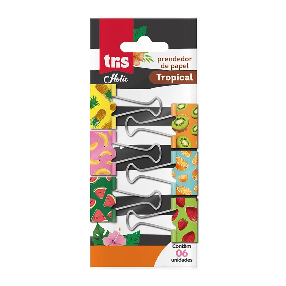 Prendedor de Papel Holic Tropical - Colorido - 25mm - Polybag C/6 un -Tris