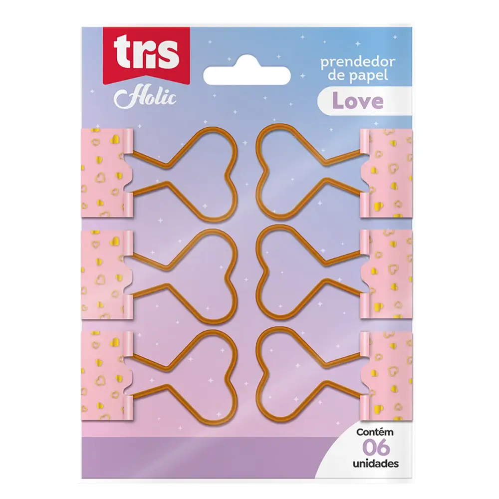 Prendedor de Papel Holic Dreamy Coração - Colorido - 25mm - Polybag C/6un - Tris