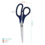 "A tesoura B7200 possui cabo em plástico resistente com a parte interna emborrachada. Possui excelente desempenho e cortes precisos, com conforto no manuseio. Lâmina em aço inox, com 1.8mm de espessura e 21,5cm de comprimento total. Cor azul com cinza."