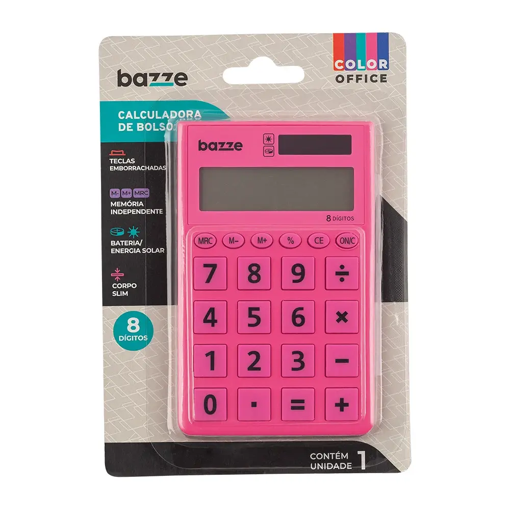 Calculadora de Bolso - 8 Dígitos - Rosa - Cartela C/1 un - Bazze