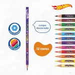 O lápis de cor Hot Wheels é de madeira reflorestada, com corpo hexagonal. Suas cores são super vibrantes e ótima cobertura, com um traço super macio!
