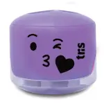 O apontador com depósito Emotion possui 2 furos: para lápis normal e jumbo! Com 6 carinhas divertidas para você escolher e lâmina antiferrugem super reforçada, que aponta até 3x mais!* Dimensões: 3,8x3,8x3,6cm. Cores sortidas.*em comparação aos apontadores tradicionais TRIS.