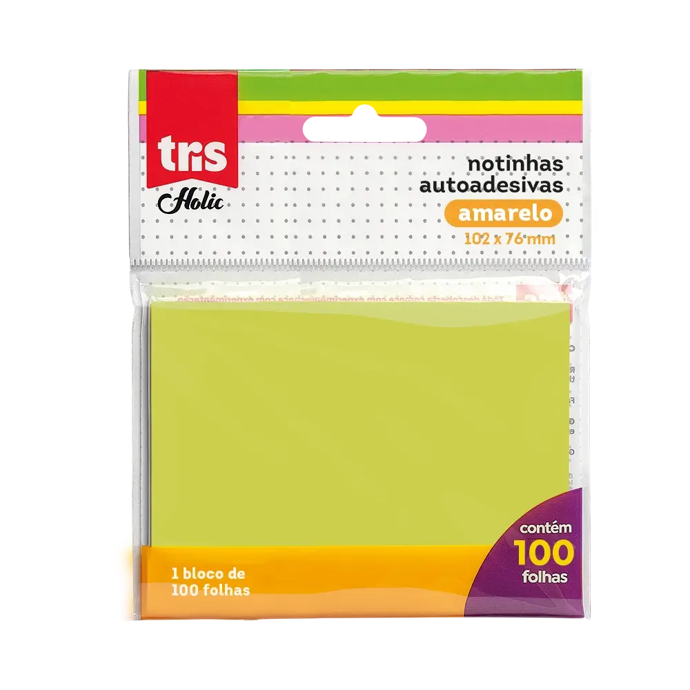 Notas Autoadesivas Holic Pop T004 - Amarelo - Polybag C/1 Bloco x 100Folhas - Tris