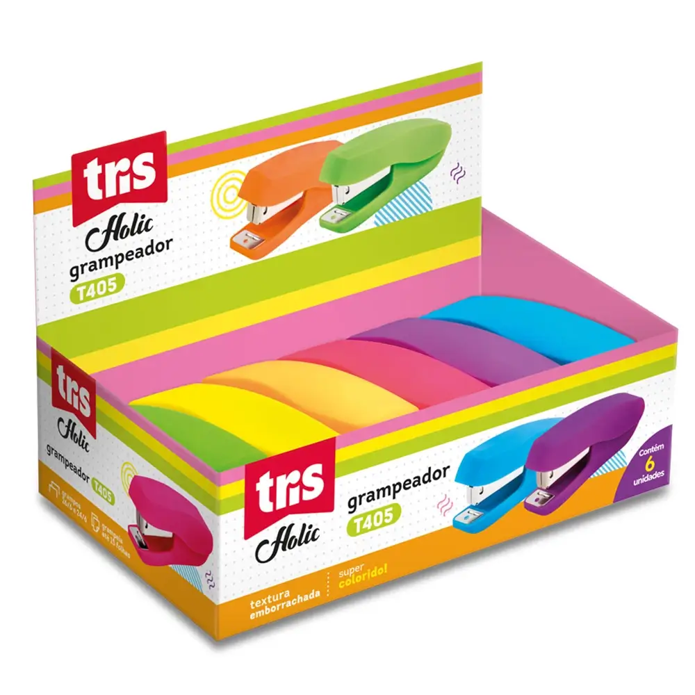 Grampeador Holic Pop T405 - 26/6 - 15 Fls - Plástico - Display C/6 Cores- Tris