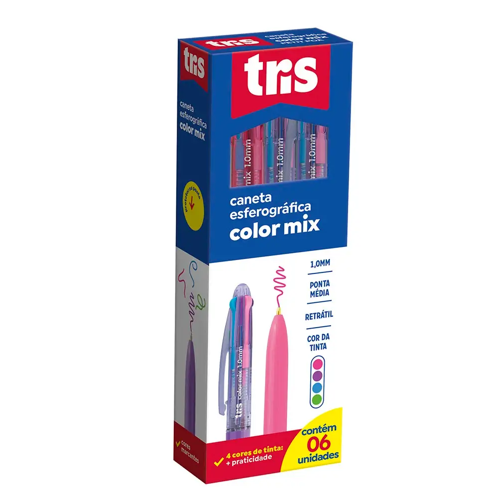 Caneta Esferográfica 4 Cores ColorMix Fashion - 1.0mm - Caixa C/6 un -Tris