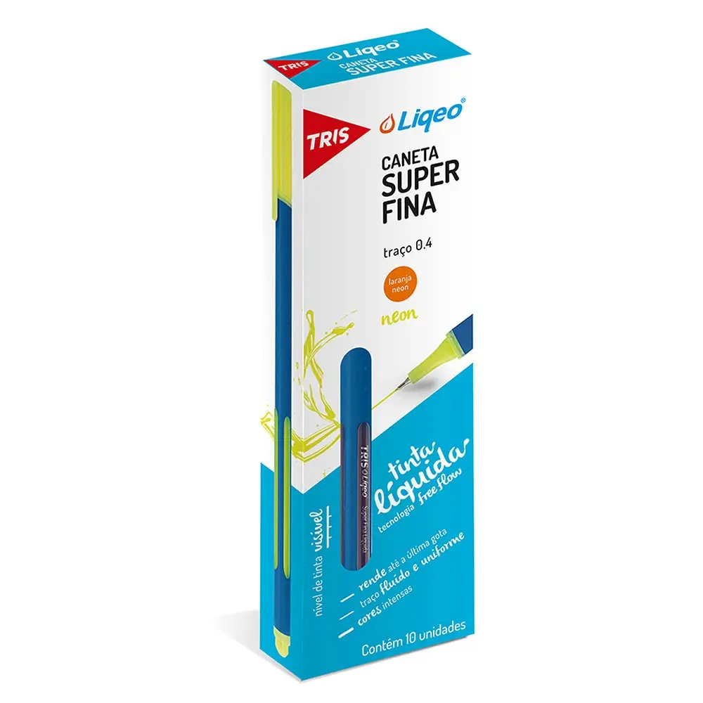 Caneta Superfina Liqeo Neon - Laranja - Caixa C/10 un - Tris