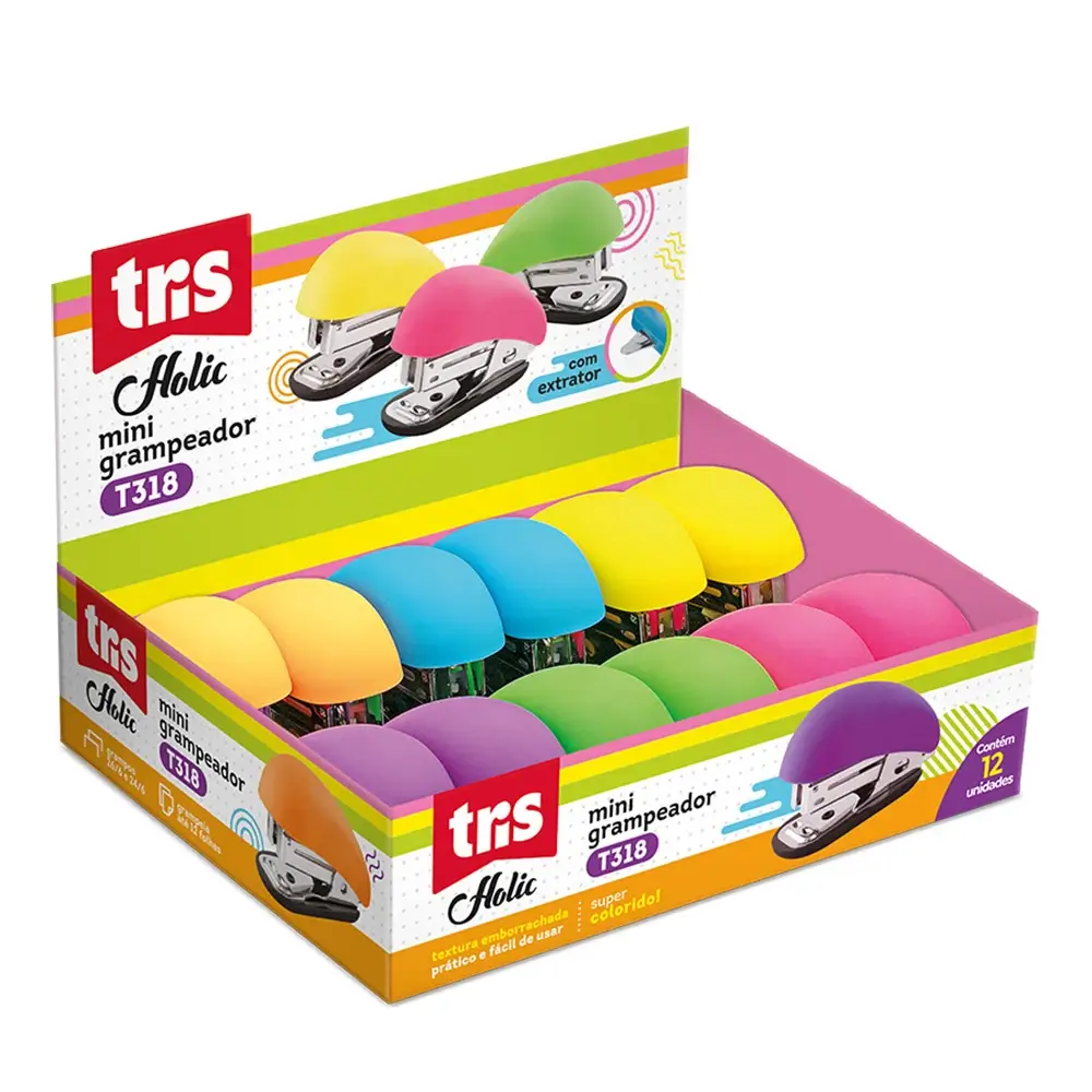 Grampeador Mini Holic Pop T318 - 26/6 - 12 Folhas - Plástico - CoresSortidas - Display C/12 un - Tris