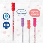 É muito amor! Com corpo redondo, de madeira reflorestada e estampa metalizada. Com uma incrível borracha no topo: escolha a sua estampa!!! Cores sortidas.