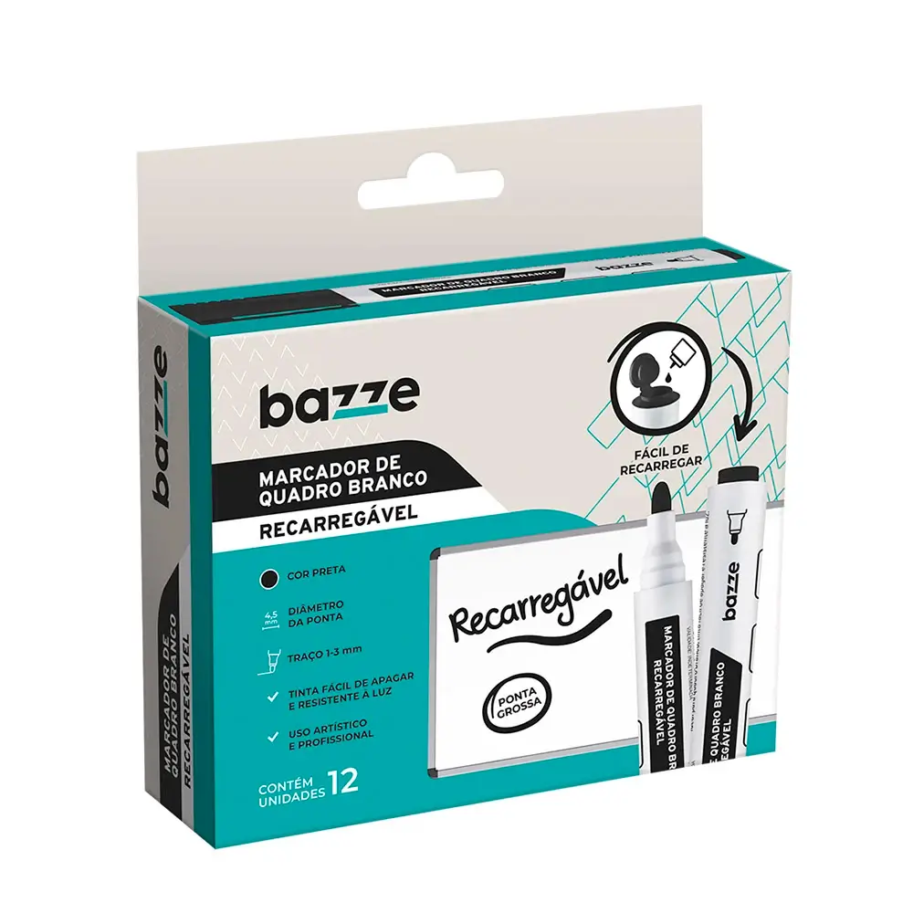 Marcador de Quadro Branco - Recarregável - Preto - Caixa C/12 un - Bazze