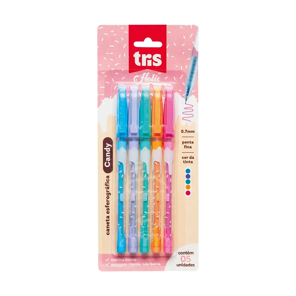 Caneta Esferográfica Candy Holic Docinhos - Cores Sortidas - 0.7mm -Cartela C/5 un - Tris