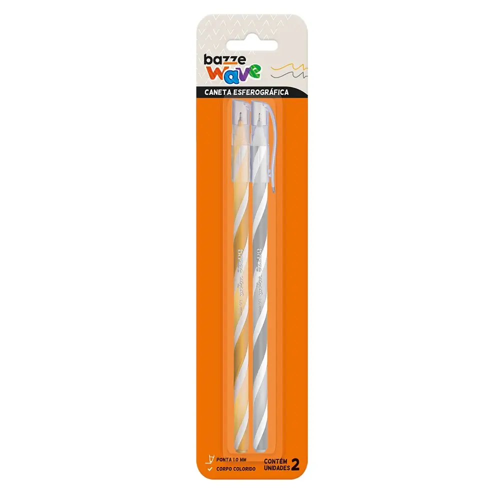 Caneta Esferográfica Wave - Ouro e Prata - 1.0mm - Cartela C/2 un -Bazze