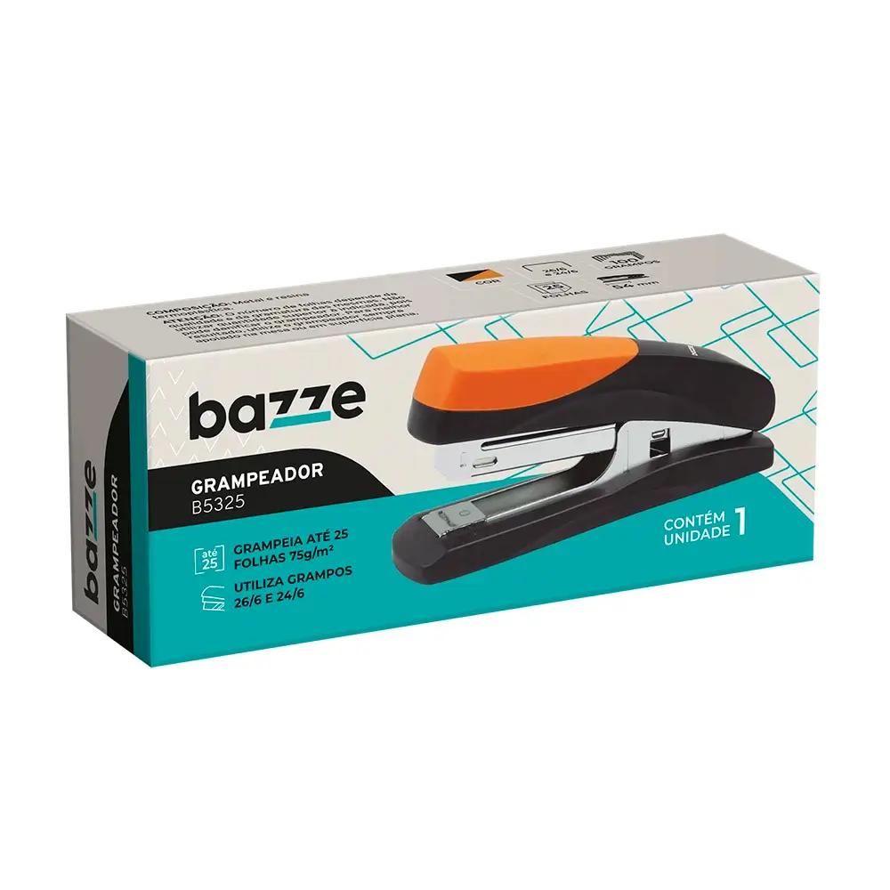 Grampeador B5325 - 25 Folhas - Plástico - Preto - Caixa C/1 un - Bazze
