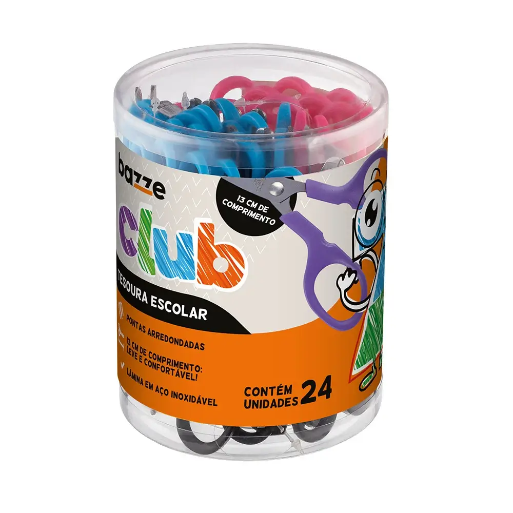 Tesoura Escolar Club - 13cm - Cores Sortidas - Pote C/24 un - Bazze