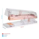 Com cores e estampas clássicas, mas que nunca saem de moda, a linha Holic Fancy veio para trazer mais estilo e elegância para o seu trabalho ou estudo. O grampeador Rose possui estrutura interna com acabamento rose gold e corpo em acetato transparente, garantindo elegância ao item. Ideal para grampos tipo 26/6 e capacidade de grampear até 30 fls