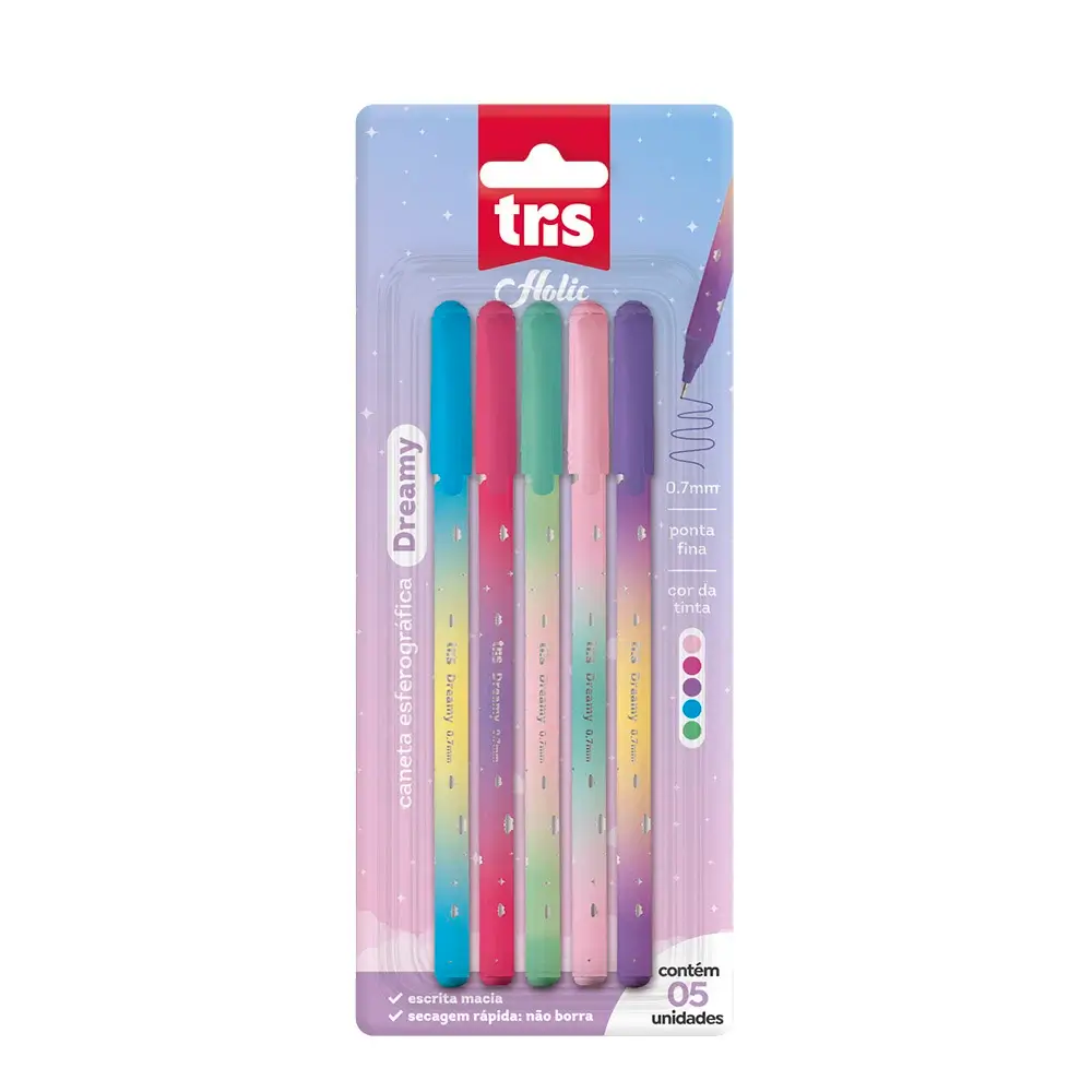 Caneta Esferográfica Holic Dreamy - Cores Sortidas - 0.7mm - Cart C/5 UN- Tris