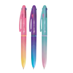 A caneta Color Mix Trend tem toda a praticidade da color mix: 4 cores namesma caneta, escrita super macia e cores marcantes. Cores de corpo nasopções rosa, turquesa ou roxo! Cores da tinta: turquesa, azul, roxo erosa.