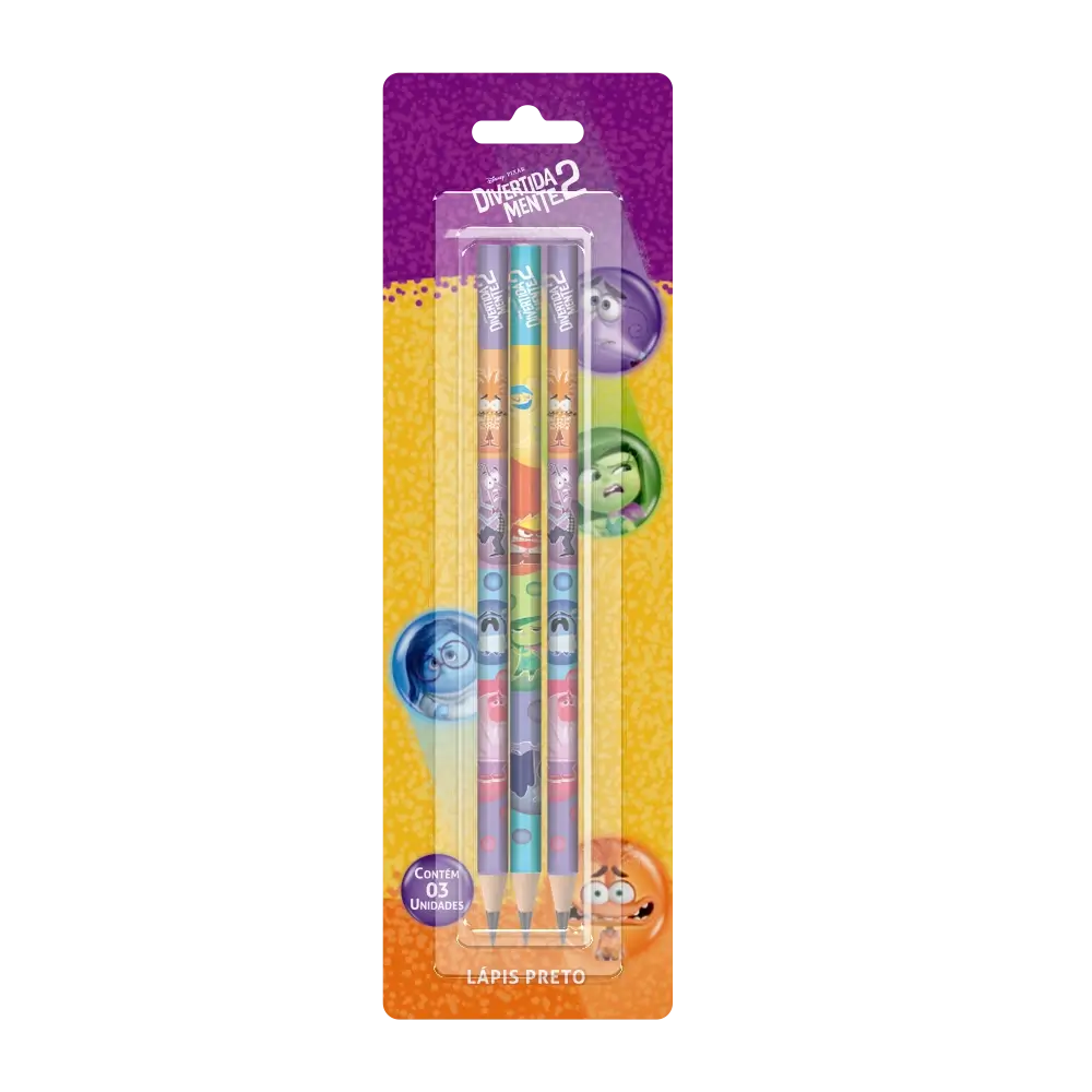 O lápis preto Divertidamente possui corpo redondo, traço HB com estampas divertidas. Cart com 3 unidades.