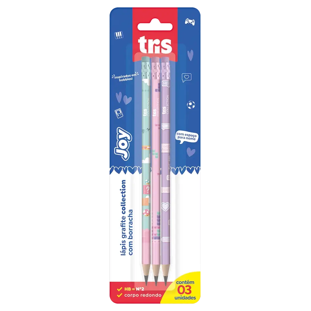 Lápis Grafite com Borracha Collection Joy - HB - Cartela C/3 un - Tris