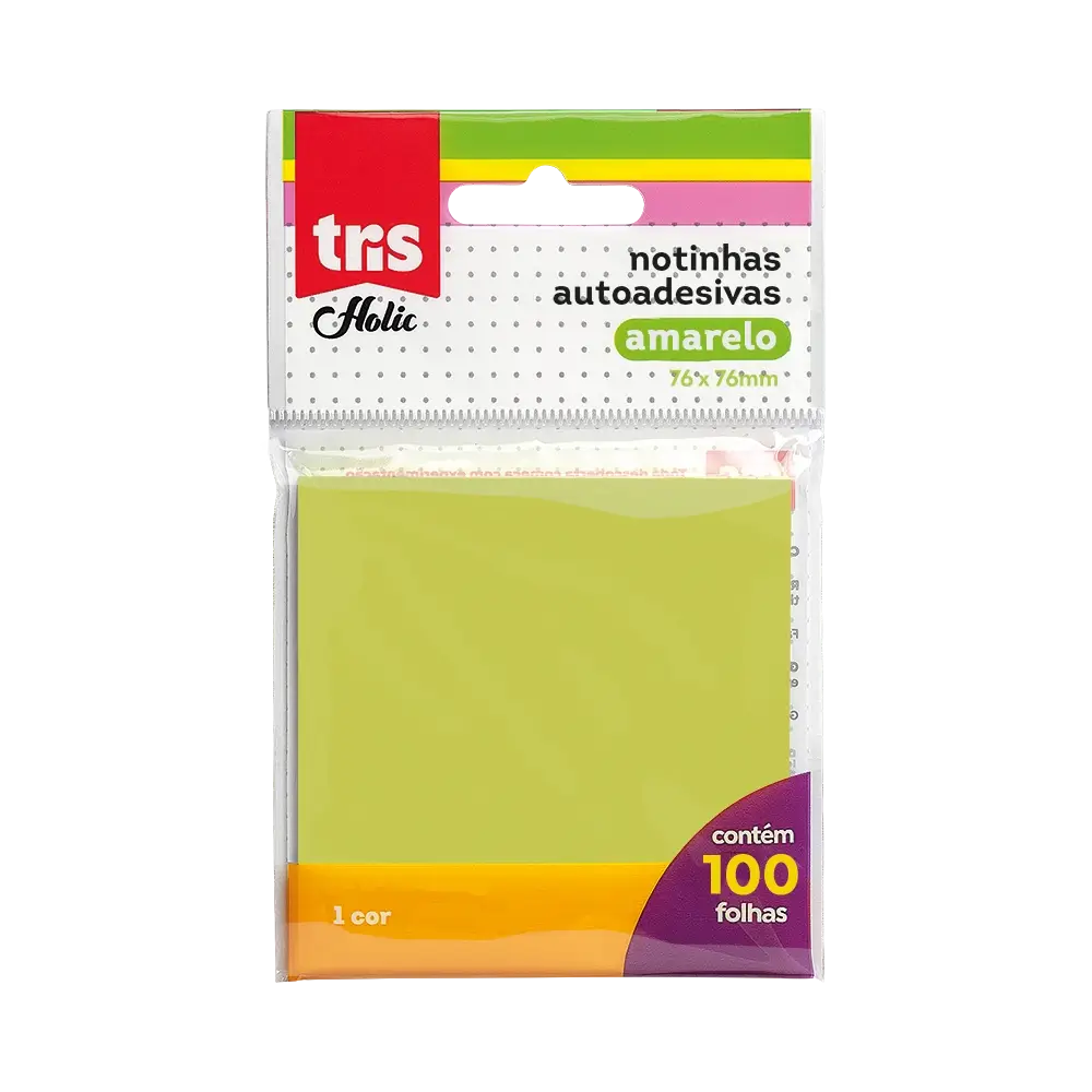 Notas Autoadesivas Holic Pop – 76 X 76mm - Amarela - Polybag C/100Folhas - Tris