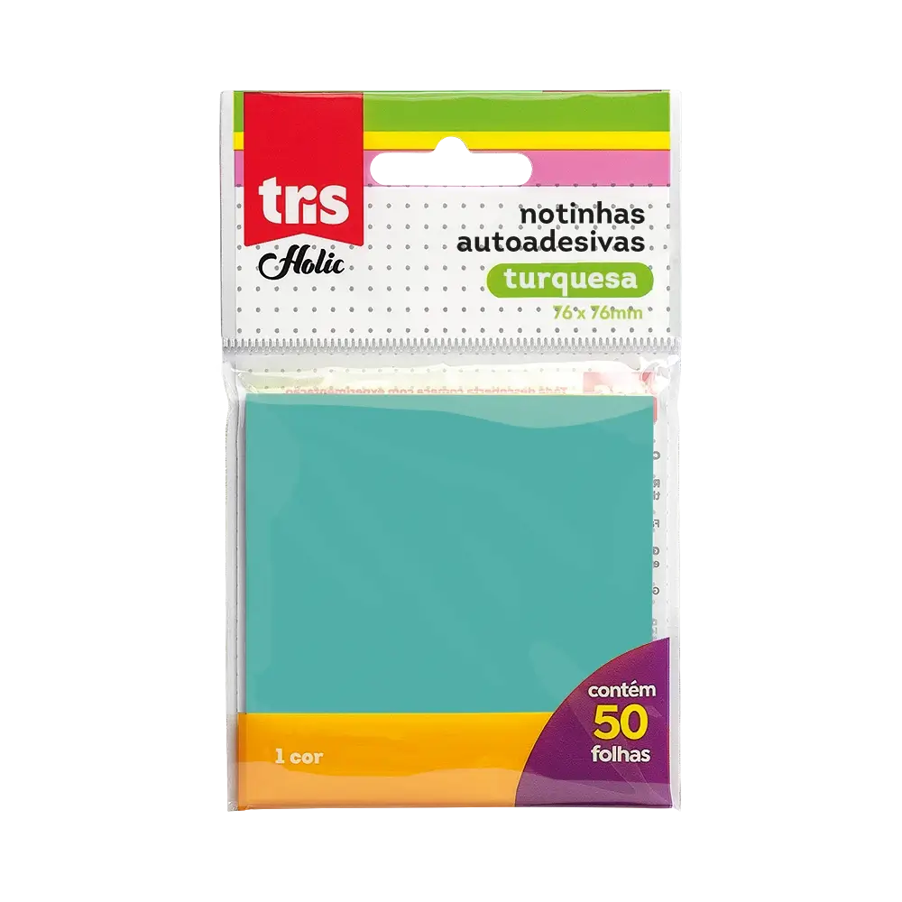 Notas Autoadesivas Holic Pop - 76 X 76mm - Turquesa - Polybag C/50Folhas - Tris