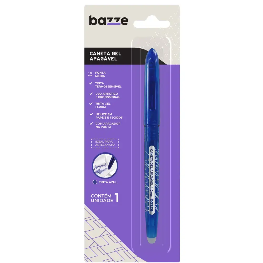 Caneta Gel Apagável Azul - 1.0mm - Cartela C/ 1 un - Bazze