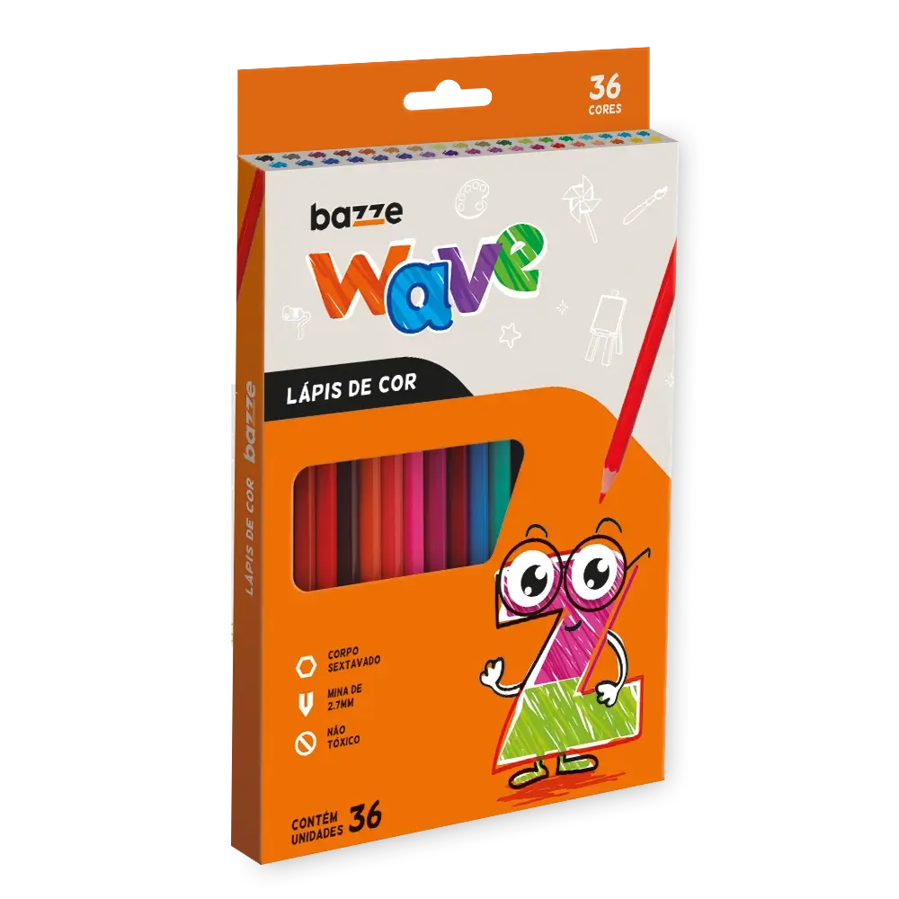 Lápis de Cor WAVE é de resina não tóxica,36 cores intensas com mina resistente de 2,7mm! Certificado pelo INMETRO.