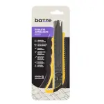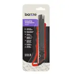 O estilete de metal Bazze é uma ferramenta de corte versátil e robusta. Possui estrutura metálica resistente, formato ergonômico para maior conforto no manuseio, lâmina em aço carbono com pontas renováveis e trava de segurança para evitar acidentes.