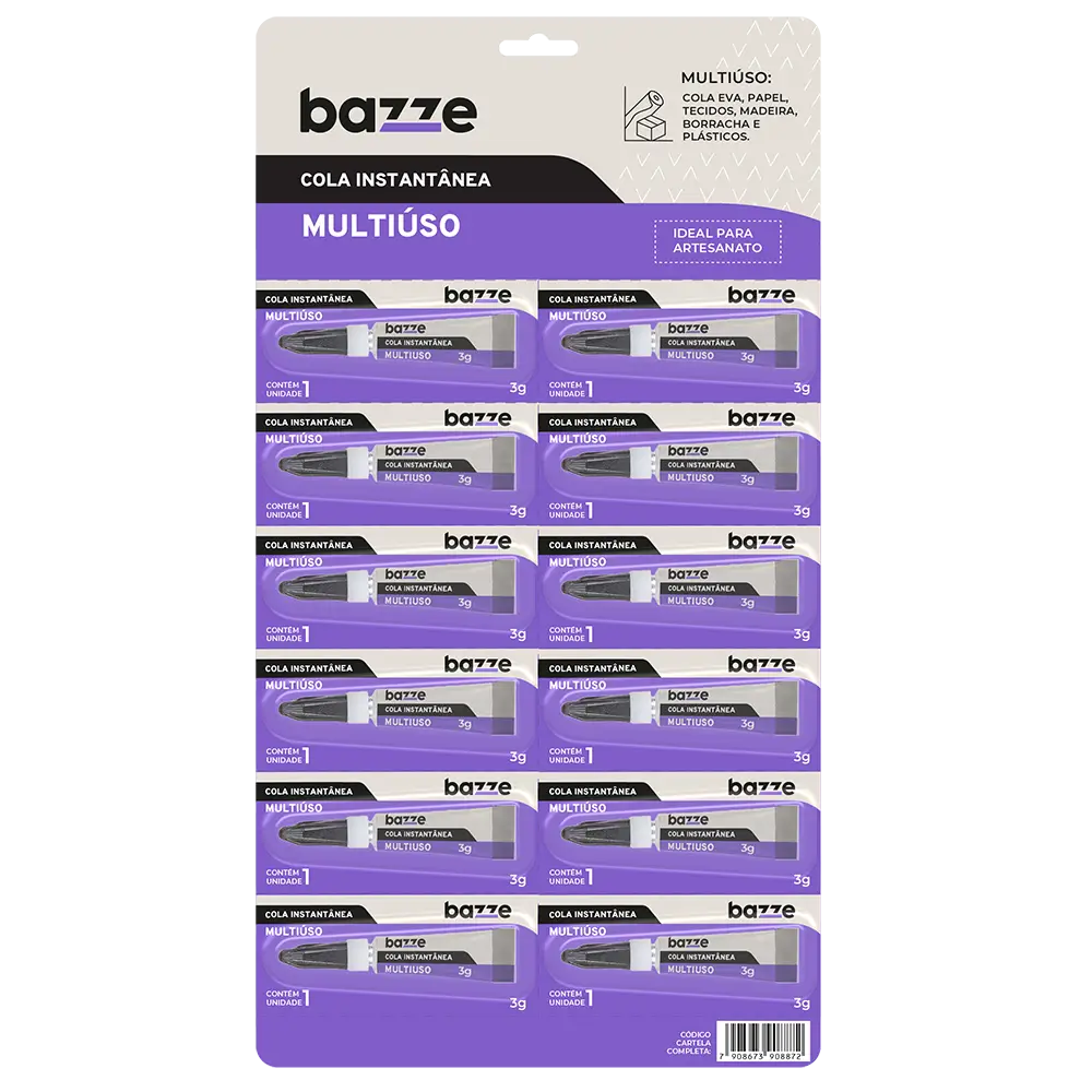 Cola Instantânea 3g - Multiuso - Cartela C/ 12 un - Bazze