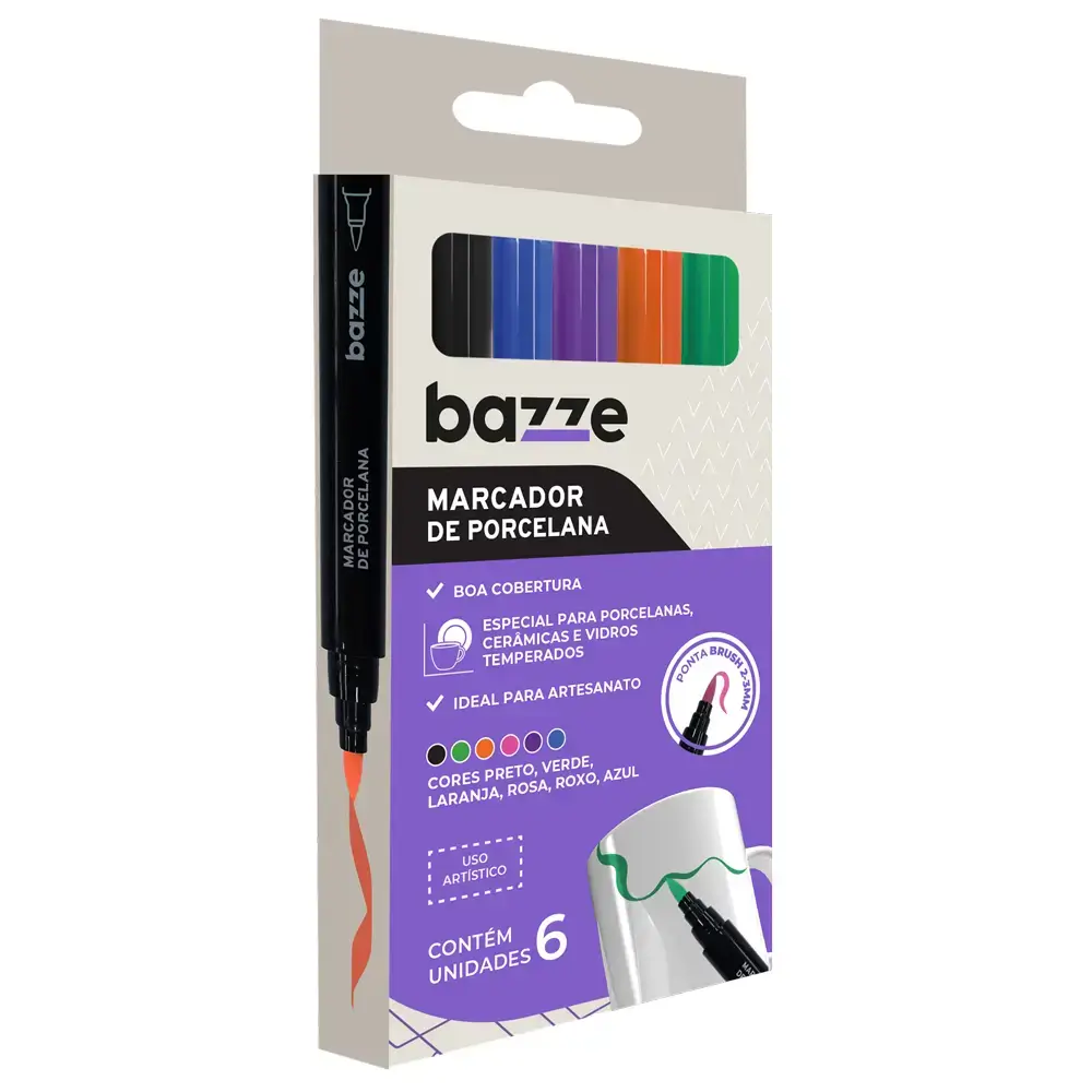 O marcador para porcelana Bazze é ideal para quem deseja usar a criatividade para personalizar ou decorar itens de porcelana, cerâmica ou vidro. Para garantir a durabilidade da tinta, recomenda-se secagem em forno. Além disso, conta com cores variadas e vibrantes. Produto ideal para artesanato.