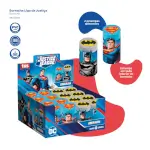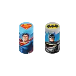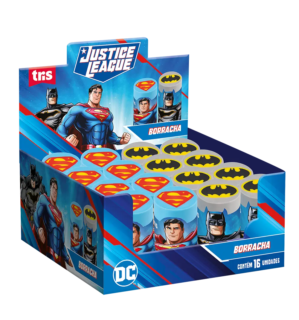 A Borracha extrusada Liga da Justiça tem a estampa do super herói em todo seu interior e textura macia. É não tóxica e tem rótulo plástico protetor.