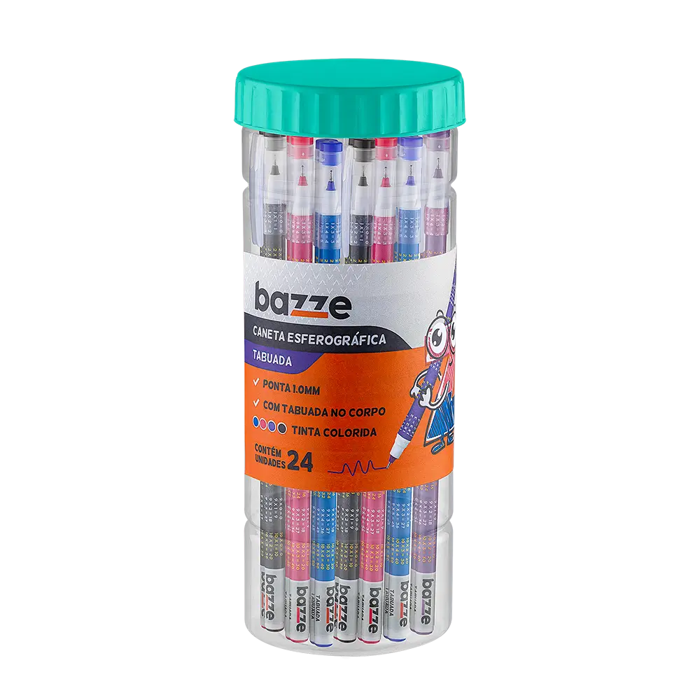 Caneta Esferográfica Tabuada - 1.0mm - Pote C/ 24 un - Bazze