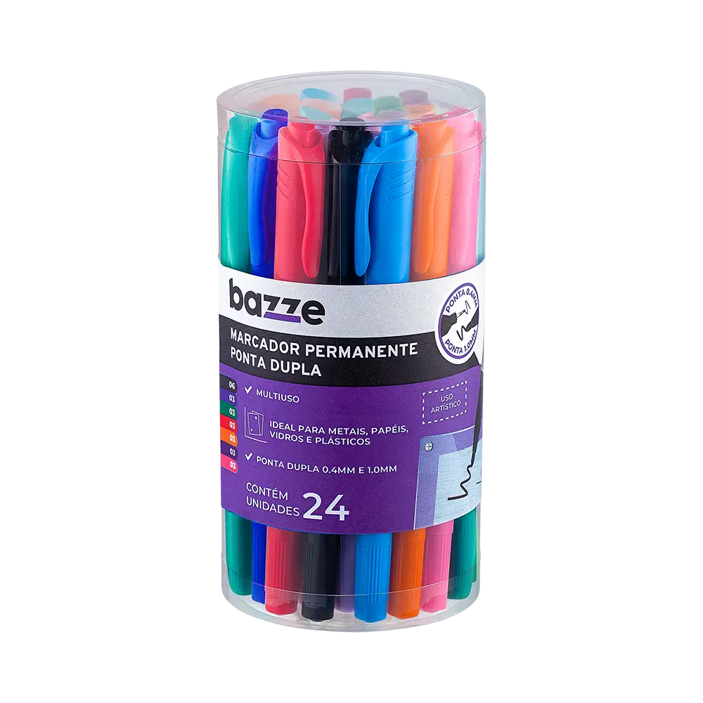 Marcador Permanente Ponta Dupla - 0.4mm e 1.0mm - Pote 24 un - Bazze