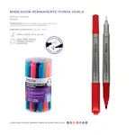 O marcador de ponta dupla, é uma caneta com pontas diferentes, utilizada para desenho, preenchimento e marcação em diversas superficies. Cada ponta oferece uma funcionalidade diferente.