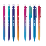 Lapiseira com corpo em degradê de cores intensas e modernas, perfeita para quem quer destacar estilo e personalidade. Conta com borracha no topo para correções rápidas e ponta de 0,5 mm, garantindo traços finos, precisos e confortáveis para escrever ou desenhar.