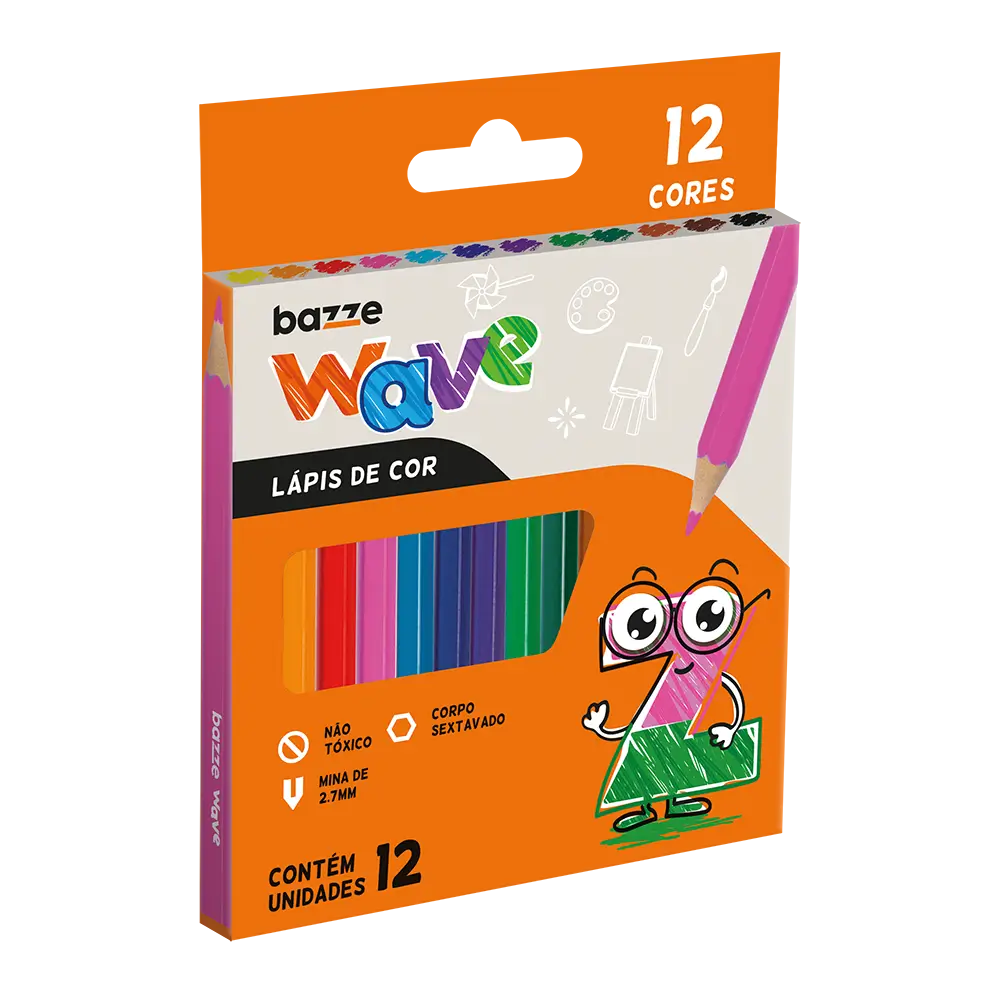 Lápis de Cor Wave Mini - 12 Cores - Bazze