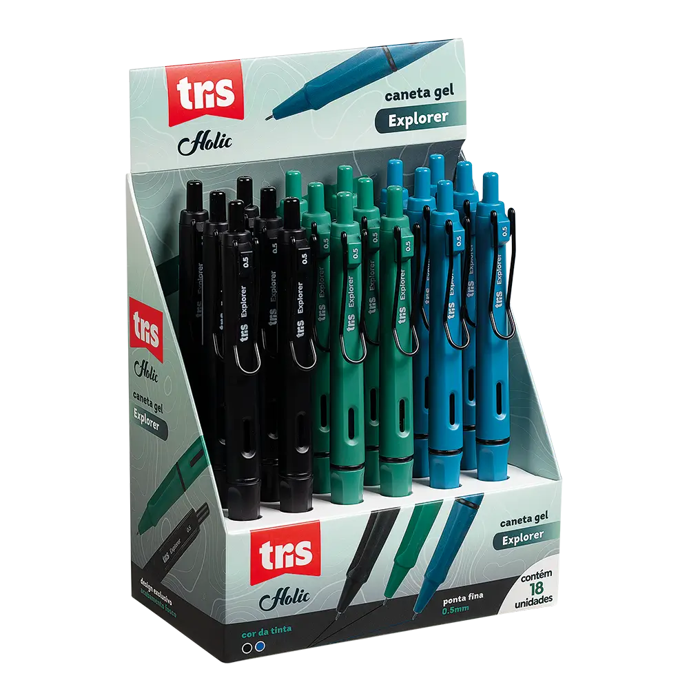 Com cores e estampas clássicas que nunca saem de moda, a coleção Holic Fancy leva mais estilo e elegância para os estudos. A caneta gel Explorer tem acabamento fosco, clip metálico e é super versátil. Sua ponta é fina, 0.5mm e tem tinta azul e preta.