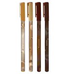 Dedicada aos amantes de café, a coleção Coffee Shop traz o aconchego e a energia das cafeterias para o universo da papelaria. A caneta esferográfica Coffee Shop possui 4 estampas inspiradas em bebidas de cafeteria, tinta com cheirinho de café, em 3 cores: azul, preto e marrom. Sua escrita é macia e tem ponta 1.0mm.