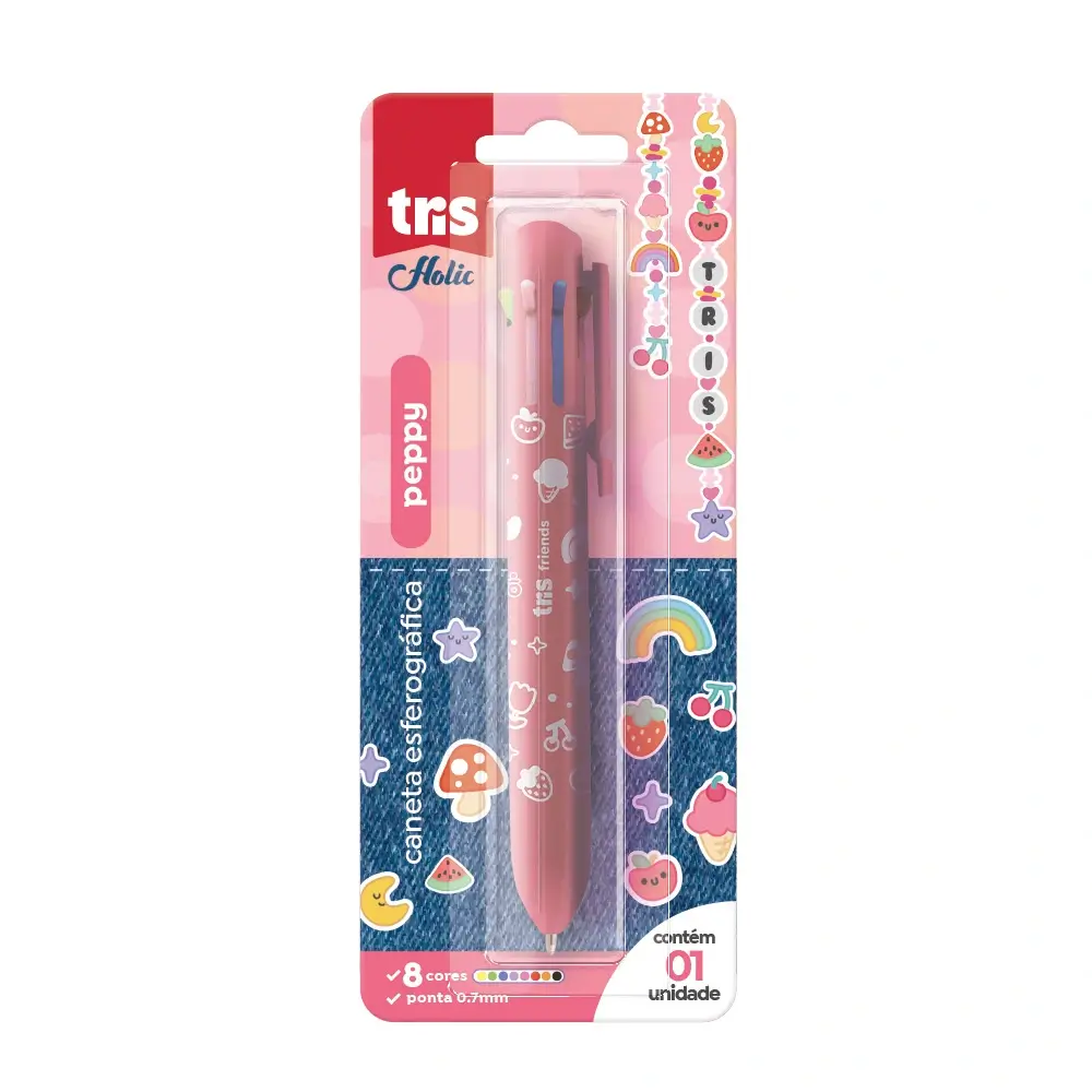 Caneta Esferográfica Peppy Holic Charm - 8 Cores - 0.7mm - Cartela C/ 1un - Tris