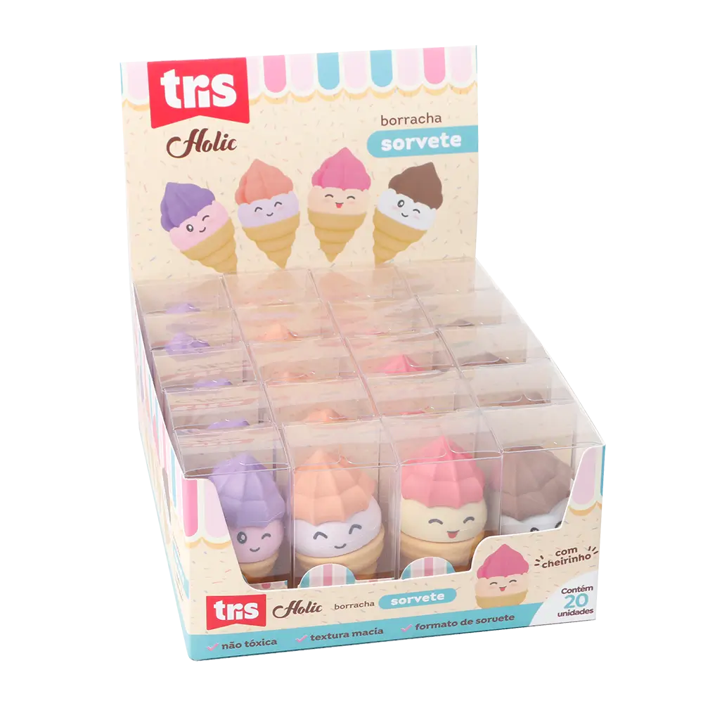 Borracha Sorvete Holic Docinhos - Cores Sortidas - Display C/ 20 un -Tris