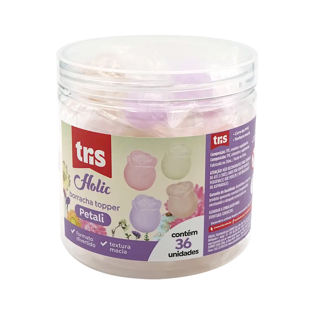 Borracha Ponteira Petali Holic Delicata - Cores Sortidas - Pote C/ 36 un- Tris