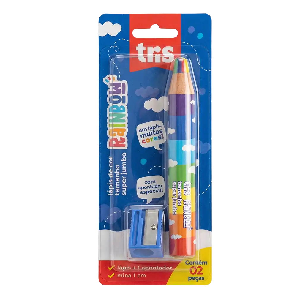 Lápis de Cor Rainbow Tamanho Super Jumbo - Mina Multicolorida - CartelaC/1 un + Apontador - Tris