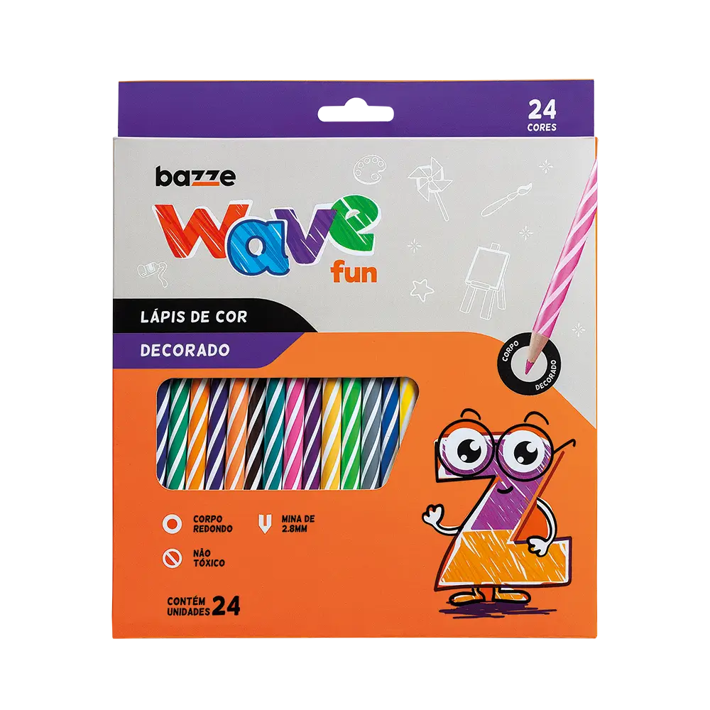 Lápis de Cor Wave Fun - Corpo Decorado - 24 Cores - Bazze